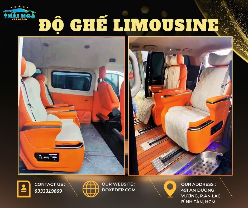 Độ ghế limousine là quá trình nâng cấp và cải tiến ghế ngồi trong xe hơi, biến chúng thành những chiếc ghế cao cấp với đầy đủ tiện nghi, mang đậm chất thời thượng và sang trọng tượng tự như dòng xe cao cấp Limousine. như ghế của xe limousine. Dịch vụ độ ghế tại Thái Ngà Car Audio không chỉ mang lại sự thoải mái mà còn tăng thêm giá trị thẩm mỹ cho chiếc xe của bạn. Áp dụng những kỹ thuật công nghệ mới, thiết kế những mẫu độ ghế Limousine ô tô thích hợp, có độ tương thích cao dành cho xe 5 chỗ, 7 chỗ, 16 chỗ,…giúp các anh không còn bị hạn chế bởi vấn đề không phù hợp khi độ ghế ô tô.